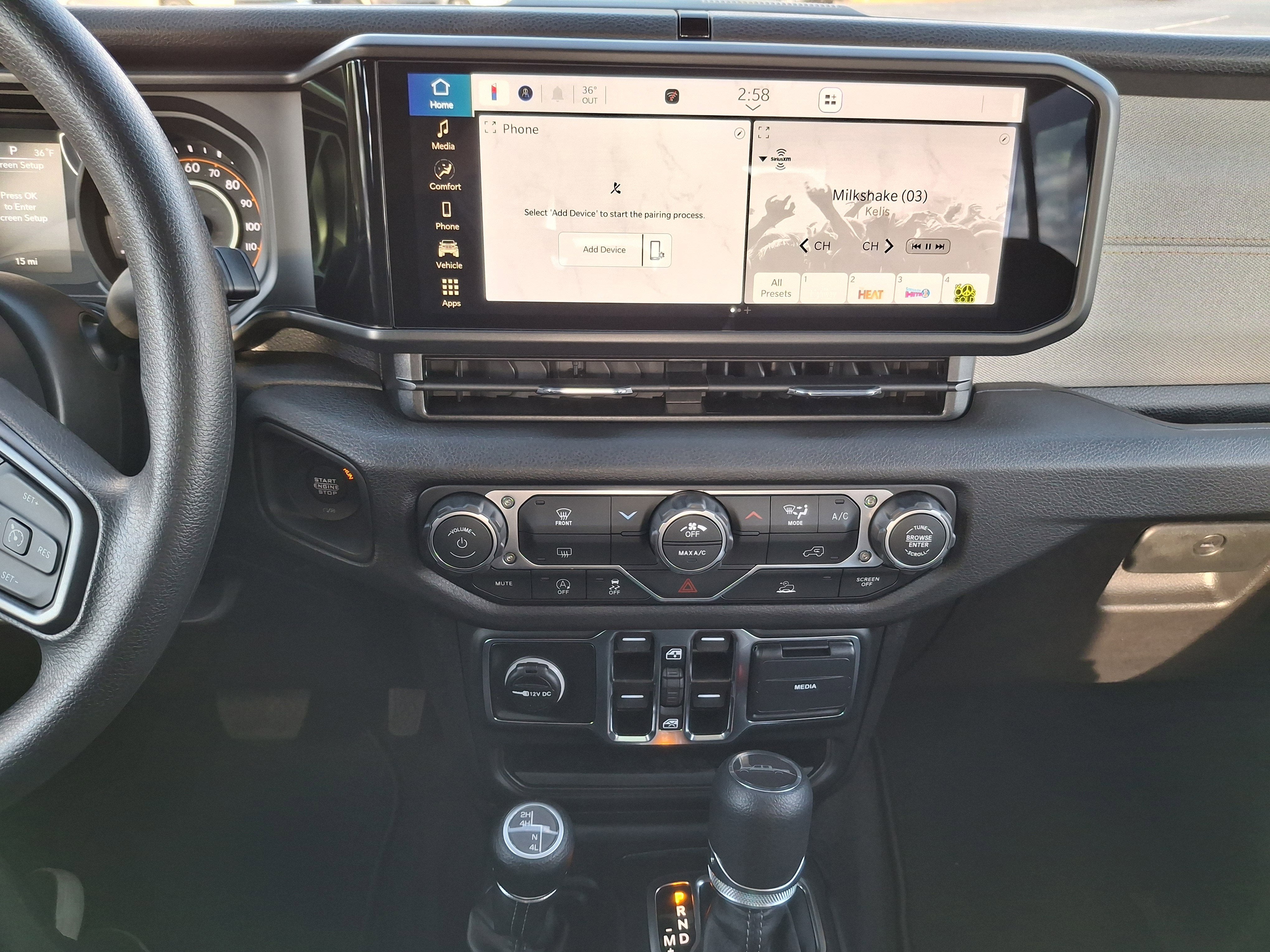 BLACK, CLOTH LOW-BACK BUCKET SEATS, BLACK 3-PIECE HARD TOP -inc: Freedom Panel Storage Bag, Rear Window Defroster, Rear Sliding Window, 8-SPEED AUTOMATIC 850RE TRANSMISSION (STD), 5,800 LBS GVWR (STD), 3.73 REAR AXLE RATIO (STD), 3.6L V6 24V VVT UPG I ENGINE W/ESS (STD), Wireless Phone Connectivity, Window Grid Antenna, Variable Intermittent Wipers, USB Host Flip.