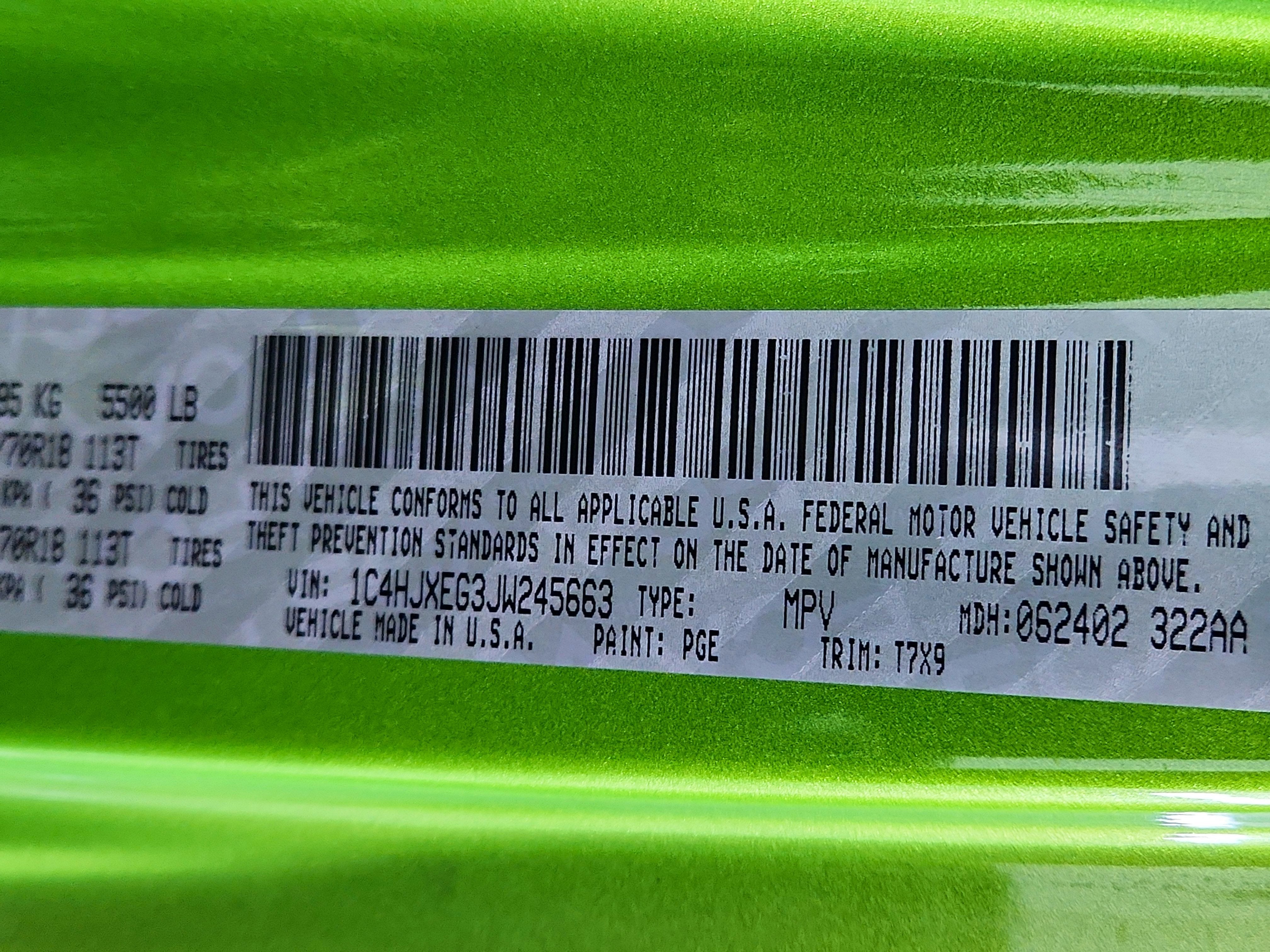 QUICK ORDER PACKAGE 24G -inc: Engine: 3.6L V6 24V VVT UPG I w/ESS, Transmission: 8-Speed Automatic (850RE) , SIRIUSXM SATELLITE RADIO, REMOTE START SYSTEM, RADIO: UCONNECT 4C NAV W/8.4" DISPLAY, MOPAR HARDTOP HEADLINER, MOPAR ALL-WEATHER FLOOR MATS, MOJITO! CLEARCOAT, LED LIGHTING GROUP -inc: Daytime Running Lamps LED Accents, Front LED Fog Lamps, LED Reflector Headlamps, LED Taillamps, ENGINE: 3.6L V6 24V VVT UPG I W/ESS (STD), ELECTRONIC INFOTAINMENT SYSTEM GROUP -inc: SiriusXM Traffic (subscription required) Plus, Alpine Premium Audio System, HD Radio, Radio: Uconnect 4C Nav w/8.4" Display, Rear View Auto Dim Mirror, GPS Navigation, SiriusXM Travel Link (subscription required), Roadside Assistance & 9-1-1 Call, 8.4" Touchscreen Display.