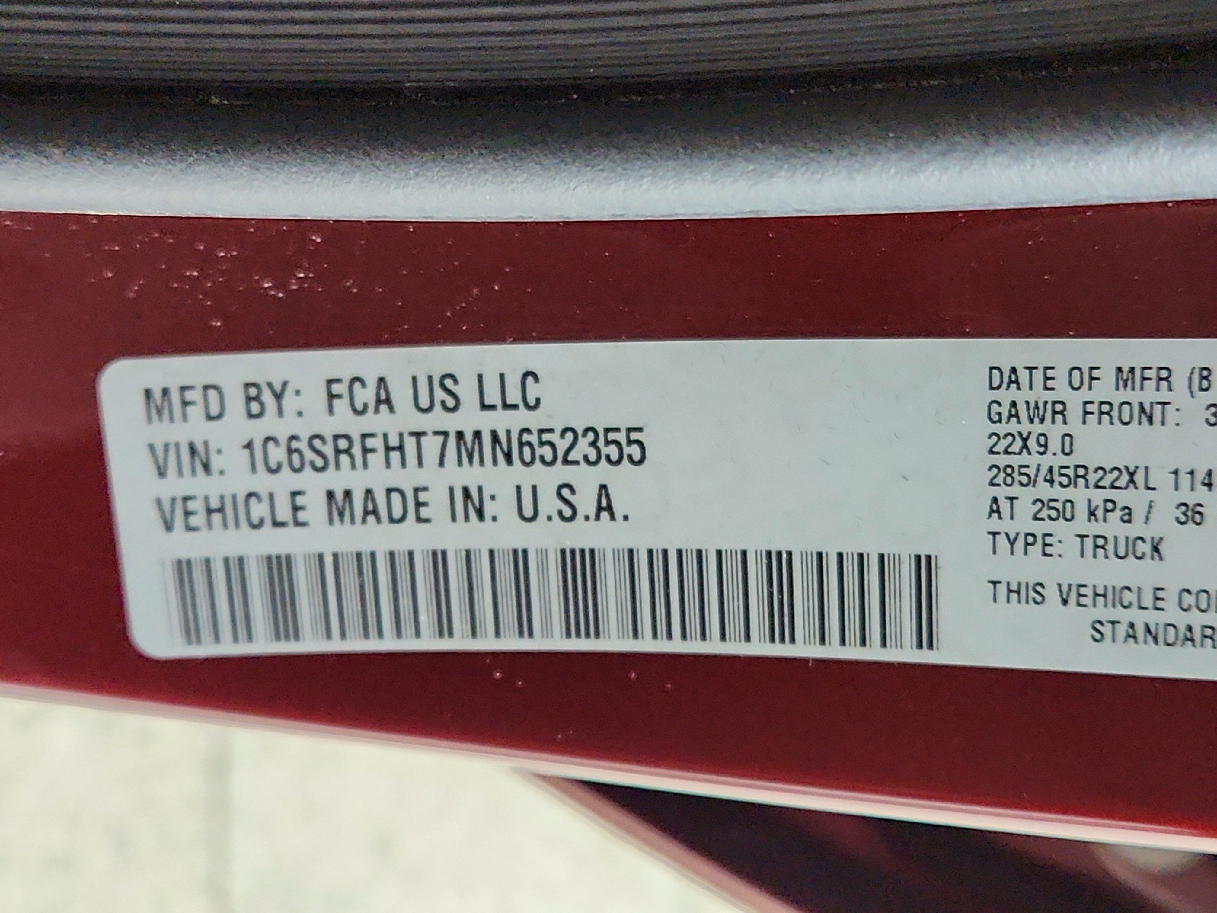 QUICK ORDER PACKAGE 27M LIMITED -inc: Engine: 5.7L V8 HEMI MDS VVT eTorque, Transmission: 8-Speed Automatic (8HP75) , TIRES: 285/45R22XL BSW ALL SEASON, RAMBOX CARGO MANAGEMENT SYSTEM -inc: Exterior 115V AC Outlet, MULTI-FUNCTION TAILGATE, LIMITED LEVEL 1 EQUIPMENT GROUP -inc: Adaptive Cruise Control w/Stop & Go, Surround View Camera System, Parallel & Perp Park Assist w/Stop, Ventilated Rear Seats, Pedestrian Emergency Braking, Lane Keep Assist, GVWR: 7,100 LBS (STD), ENGINE: 5.7L V8 HEMI MDS VVT ETORQUE -inc: Active Noise Control System, Heavy Duty Engine Cooling, Delete Alternator, Dual Rear Exhaust w/Bright Tips, HEMI Badge, 18" Aluminum Spare Wheel, DUAL-PANE PANORAMIC SUNROOF -inc: LED Dome/Reading Lamp, Dome Dual LED Reading Lamp, DELMONICO RED PEARLCOAT, BODY COLOR BUMPER GROUP -inc: Body Color Rear Bumper w/Step Pads, Body Color Front Bumper.