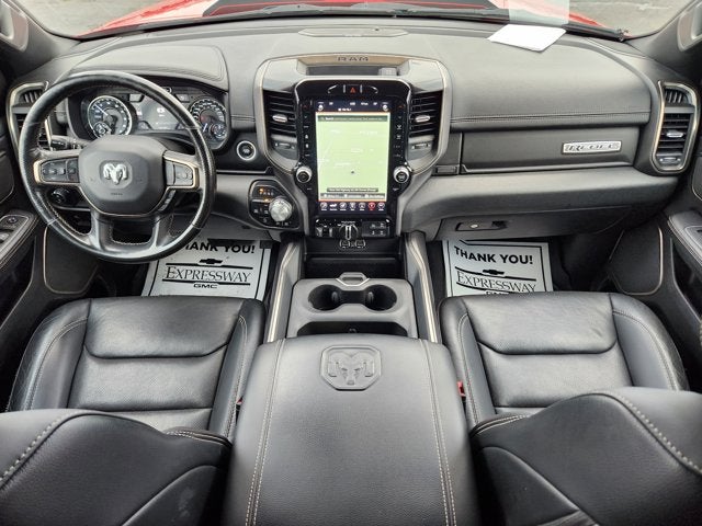 Delivers 22 Highway MPG and 17 City MPG! This Ram 1500 delivers a Regular Unleaded V-8 5.7 L/345 engine powering this Automatic transmission. TRANSMISSION: 8-SPEED AUTOMATIC (8HP75), TRAILER BRAKE CONTROL, REMOTE START SYSTEM.