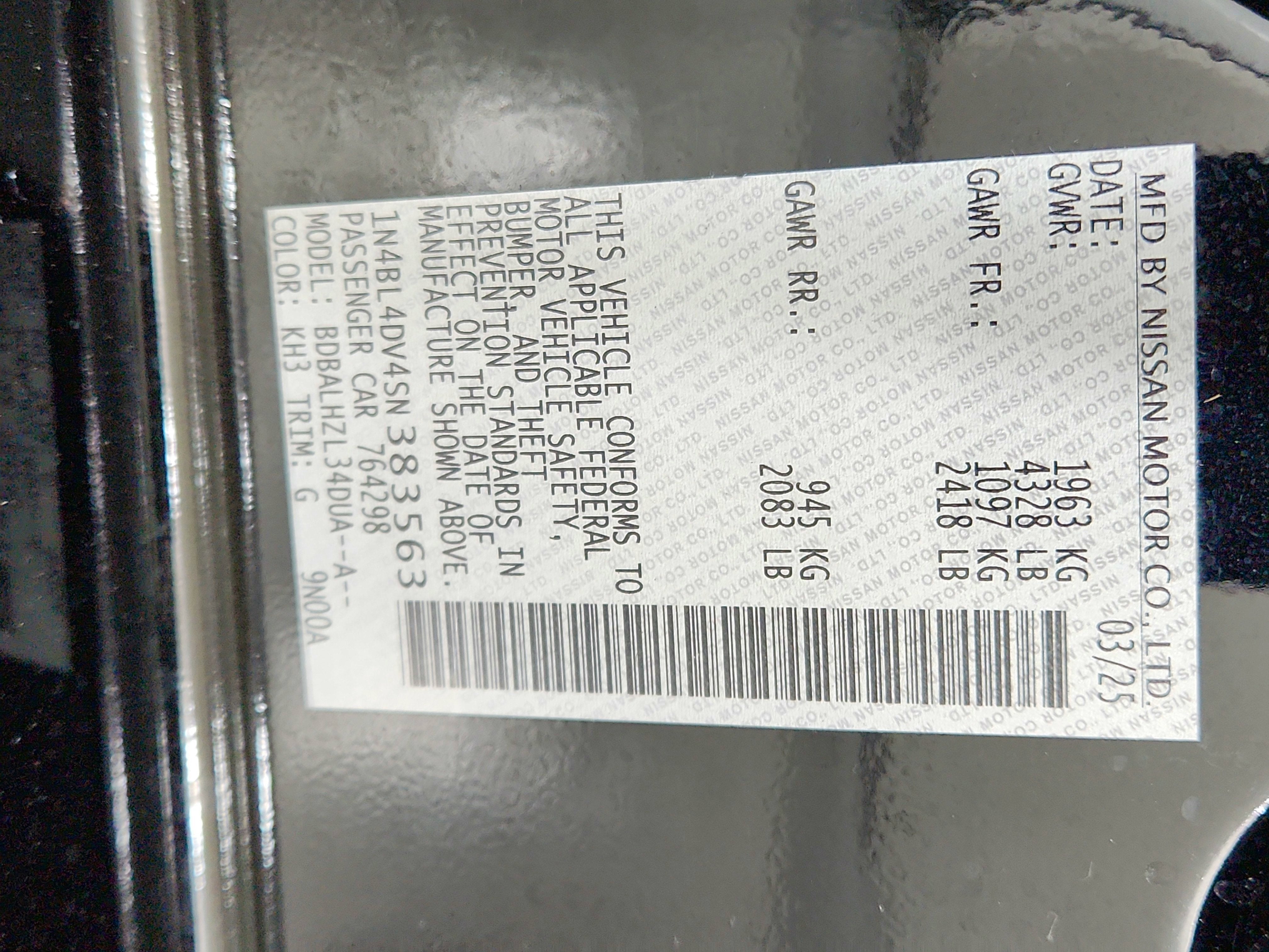 - Vehicle Name: Nissan Altima