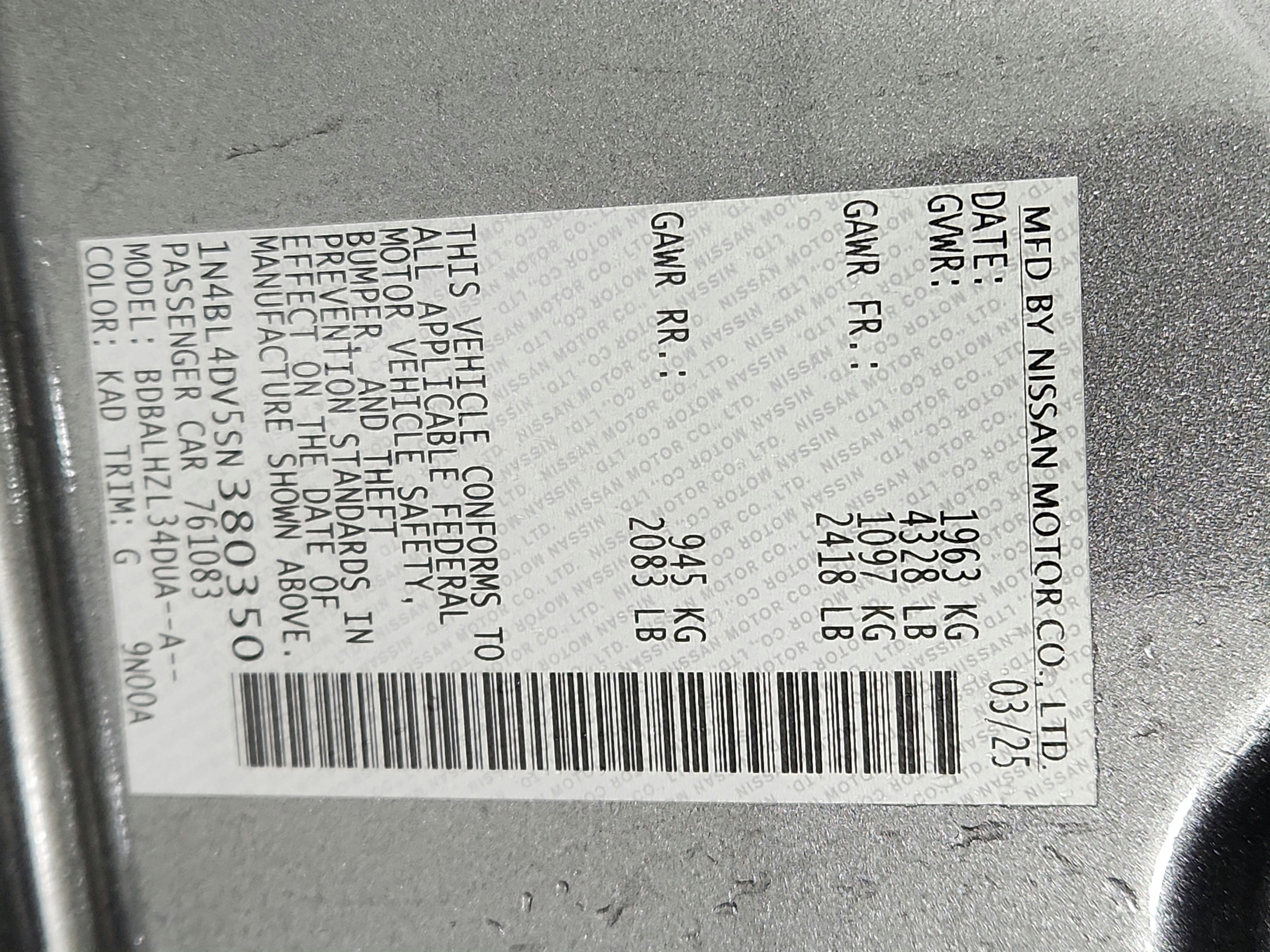 - Vehicle Name: Nissan Altima
