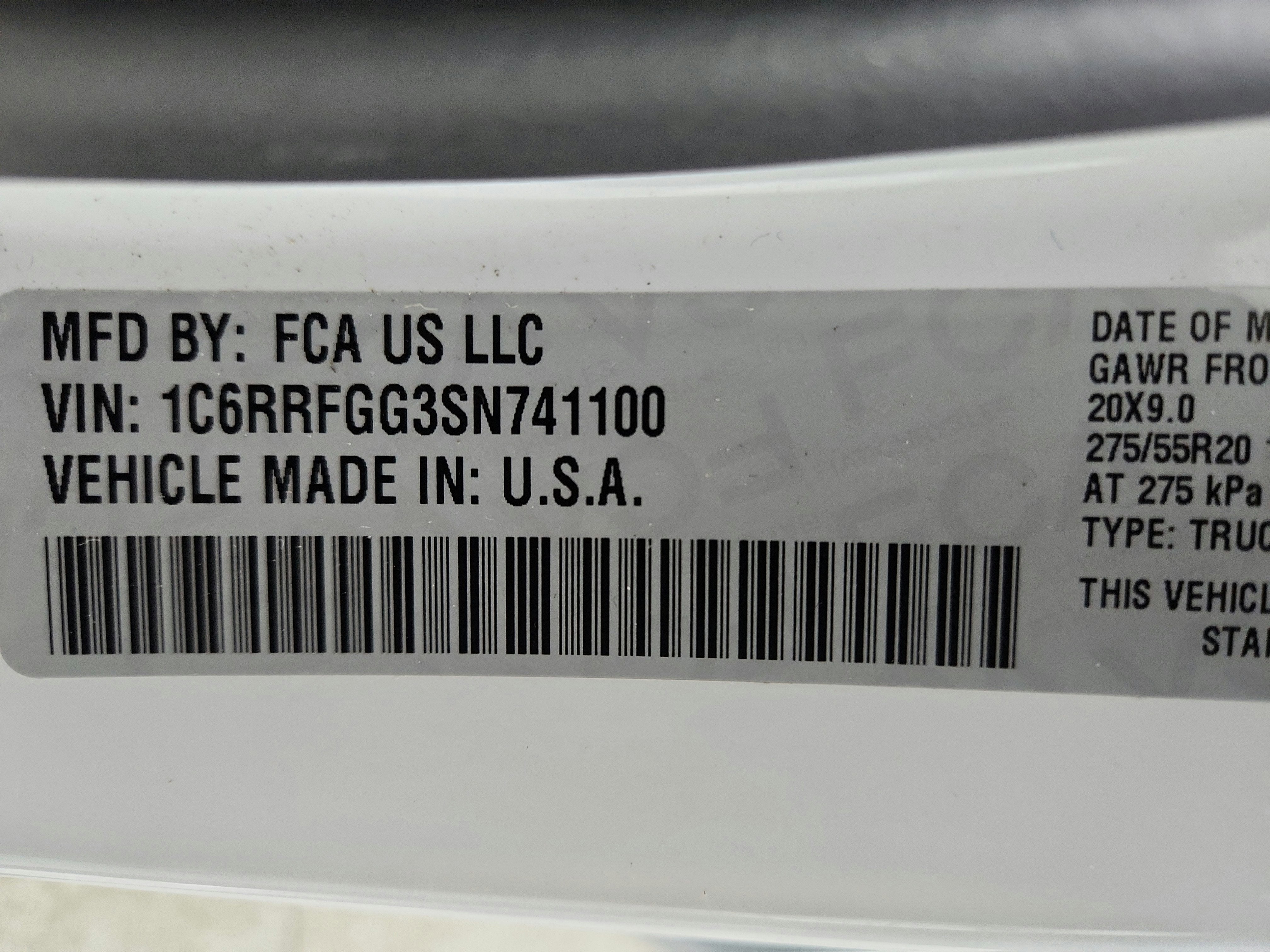 - Front Tire Size: P275/55TR20